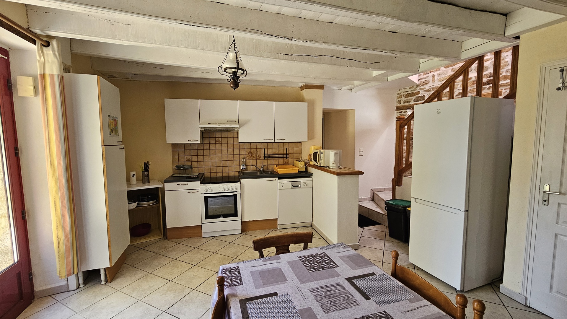 RDC cuisine, espace salon, salle de bain, WC et 1 chambre pour 4 personnes (1 lit double et 2 lits simples)