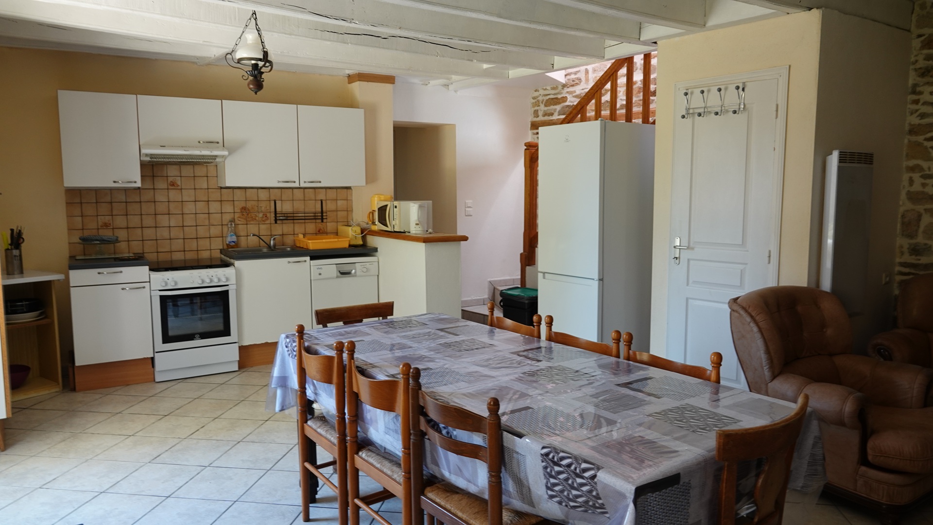 Cuisine équipée pour 10 personnes, avec plaque de cuisson, four, micro-onde, lave-vaisselle, vaisselle, cafetière, frigo