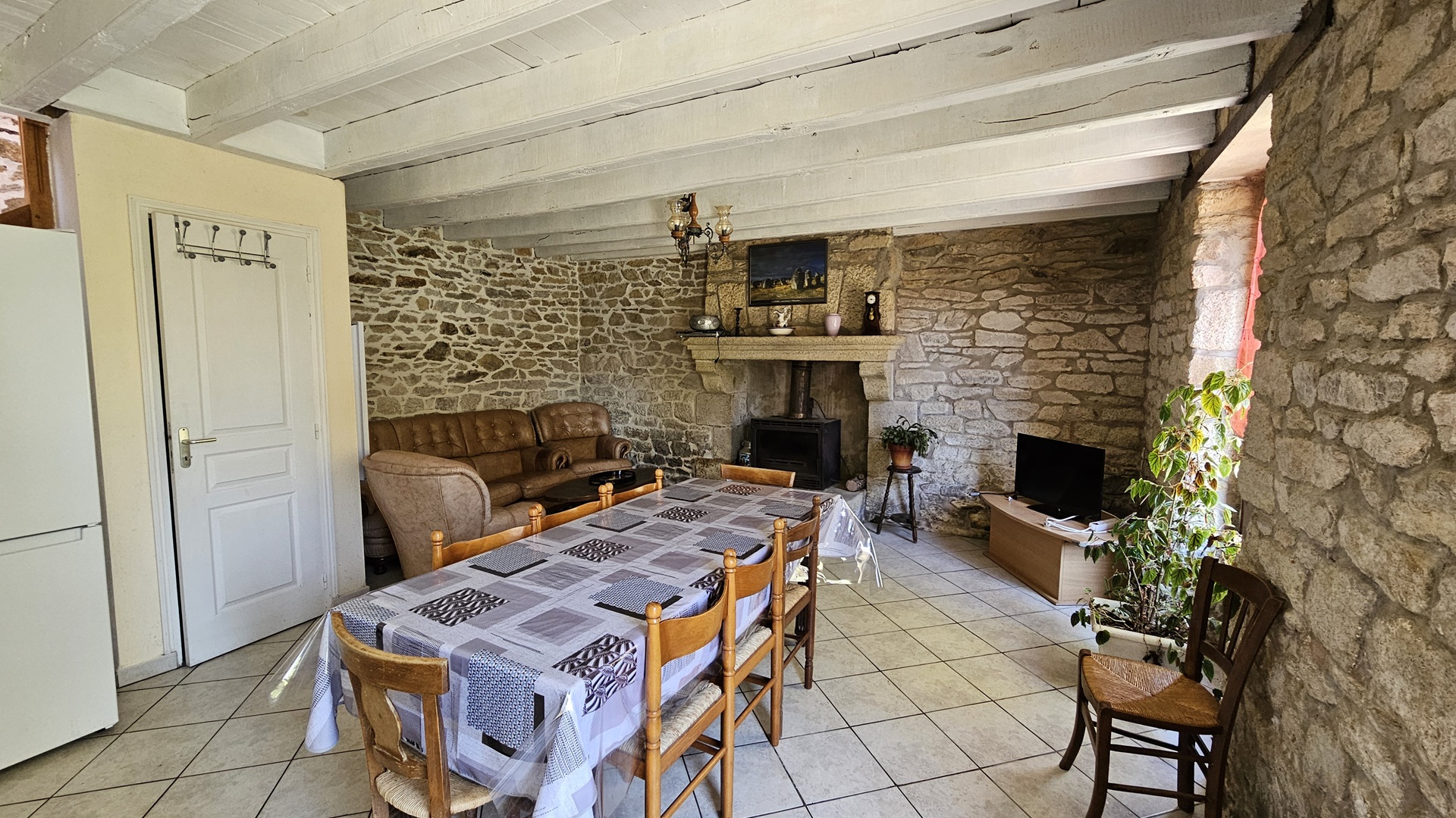 RDC cuisine, espace salon, salle de bain, WC et 1 chambre pour 4 personnes (1 lit double et 2 lits simples)